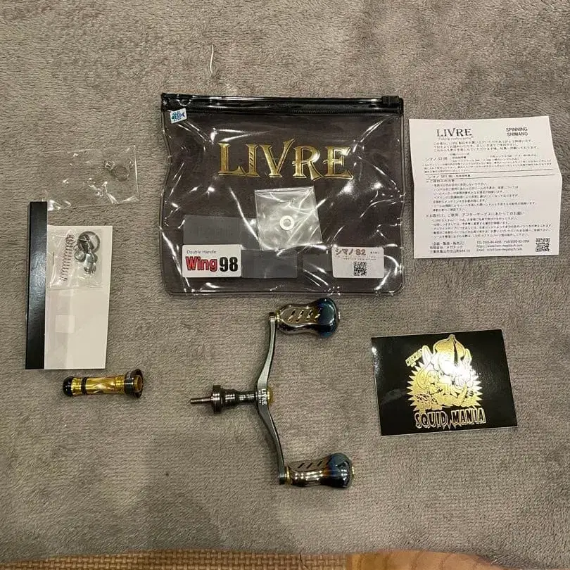 LIVRE Wing 98 더블 핸들, 블루 실버의 아름다운 디자인으로 낚시 릴 커스터마이즈에 최적입니다. - 브랜드: LIVRE - 모델명: Wing 98 - 핸들 타입: 더블 핸들 - 색상: 블루 실버 - 부속품: 부품 주머니 낚시용 릴에 최적인 LIVRE의 커스텀 밸런서 타입 2, 골드 마감. - 브랜드: LIVRE - 모델: Custom Balancer Type 2 - 색상: 골드 - 용도: 낚시용 릴 부품 스퀴트 매니아의 후크 키퍼도 함께 드립니다! 핸들 밸런서 후크 키퍼입니다! 후크 키퍼는 사용감이 있습니다! 스텔라는 포함되지 않습니다! 낚시는 한 번만 다녀왔습니다! 방문해 주셔서 감사합니다.