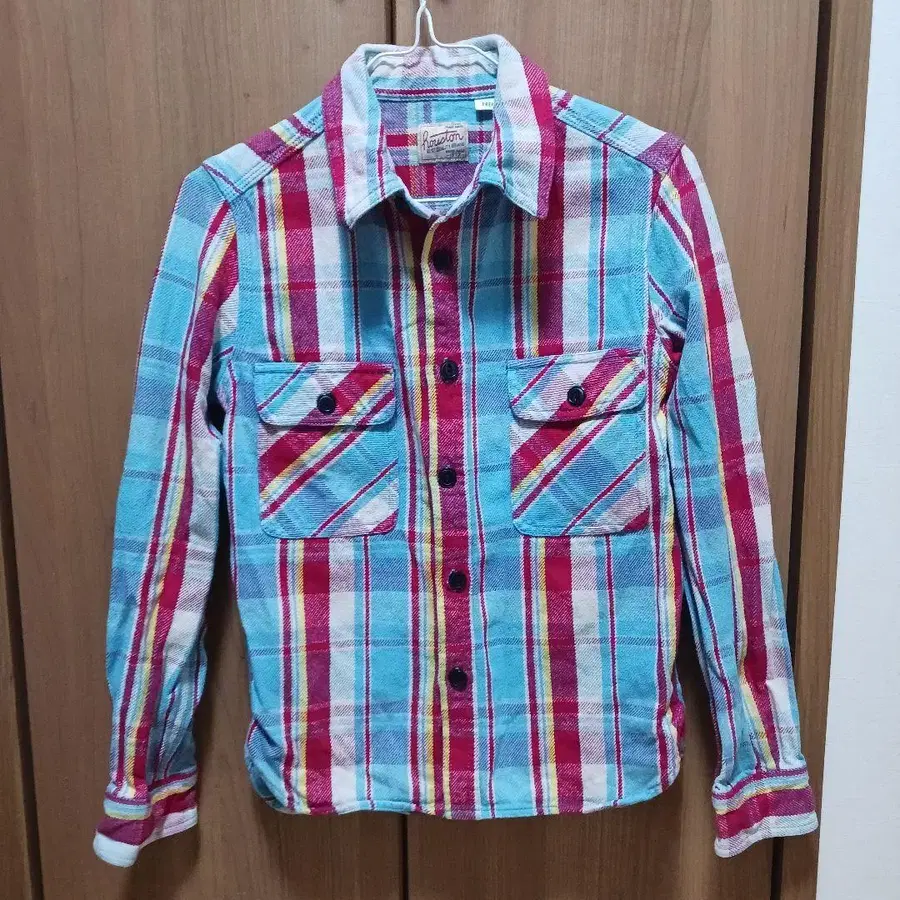 1972년 창업한 아메카지 브랜드 [Houston]의 코튼 100% 플란넬 셔츠입니다. 빨간색과 스카이블루 색감이 귀엽습니다. 사이즈는 Free라고 되어 있지만, 여성 S 사이즈 정도입니다.