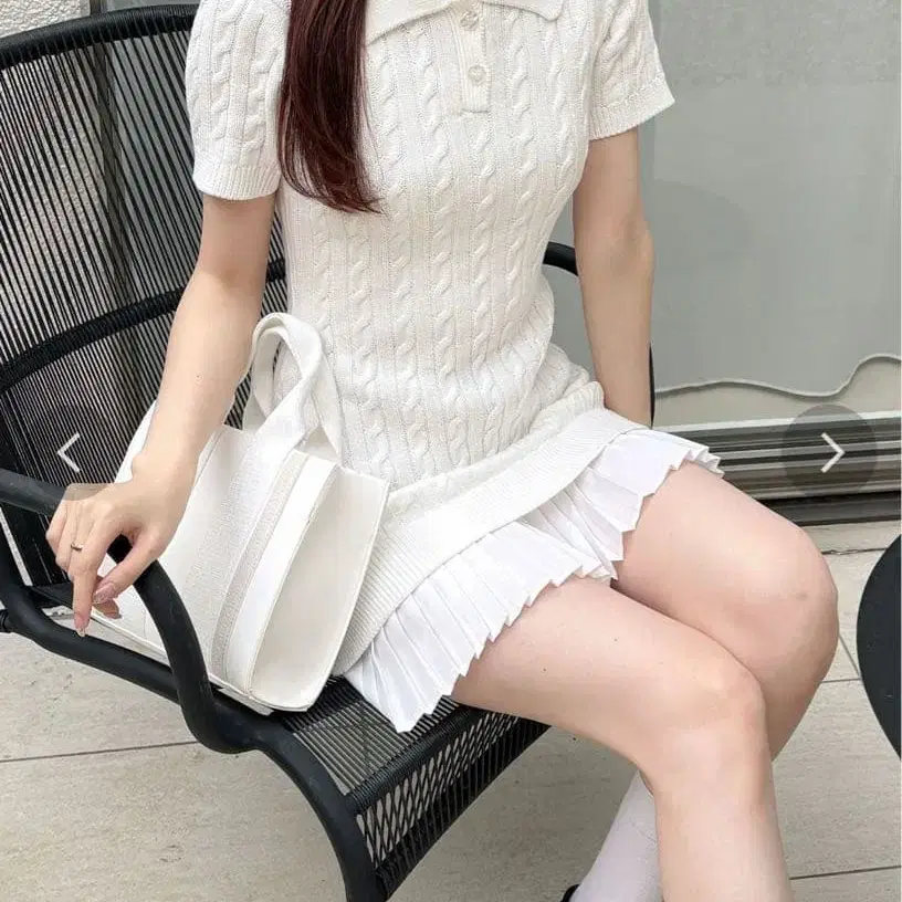 이 소재 플리츠 도킹 폴로 니트 미니 원피스
