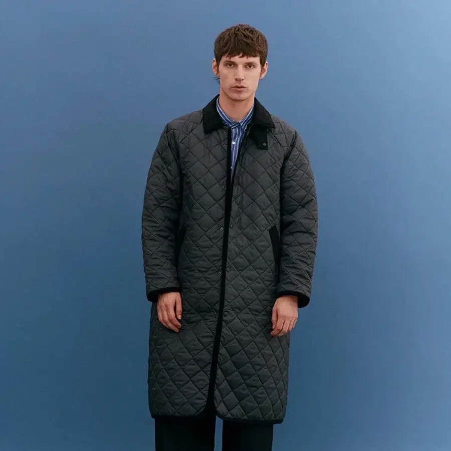 클래식한 2인치 다이아몬드 패턴으로 퀼팅된, 세련된 실루엣의 롱 코트 [컨트리]를 업데이트했습니다.