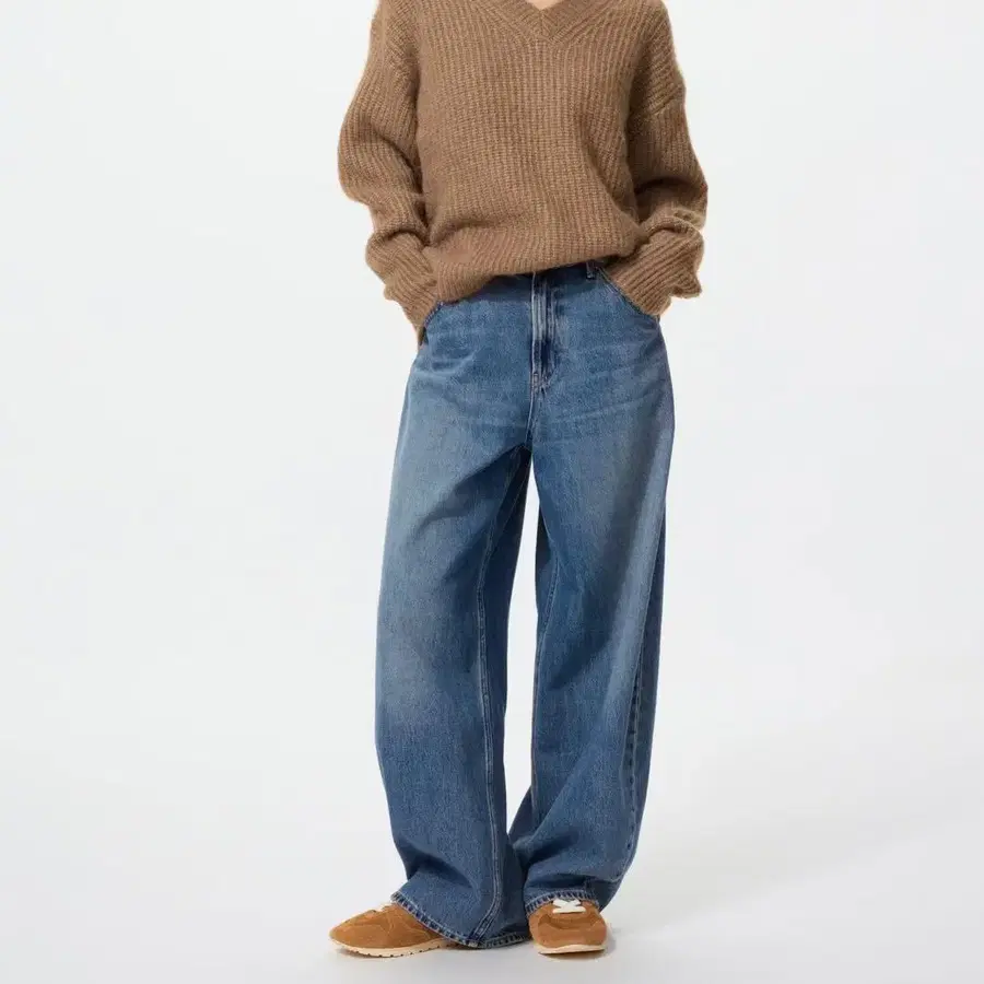 트렌디한 와이드 + 커브 실루엣에 빈티지한 워시 가공과 부드러운 착용감으로 SNS 등에서 화제가 된 인기 데님입니다.