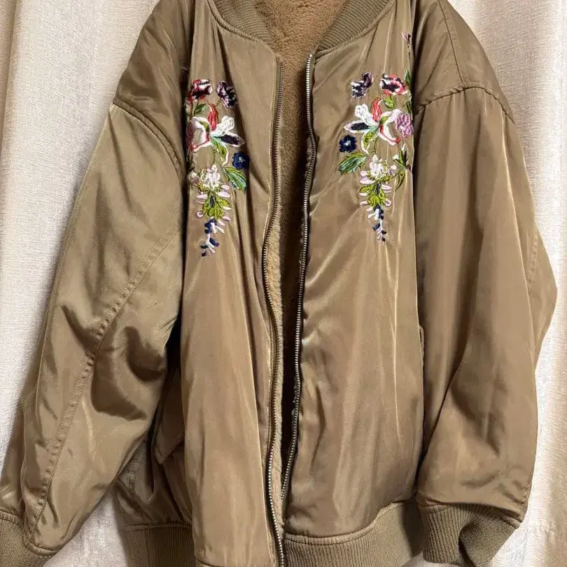 EVRIS의 리버서블 자켓입니다. 리버서블이라 분위기가 상당히 달라지는 자켓으로 매우 귀엽고 따뜻합니다. MA-1 면과 밑단에 사용감 있음. (사진 5, 6장 참조)