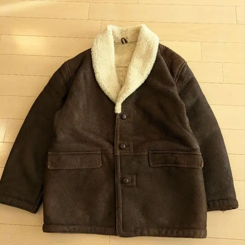 이탈리아제 리얼 무스탕 2L 무스탕 코트 호두 단추 양가죽 보아