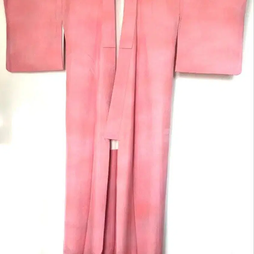 [상품 설명] 기모노만 판매합니다. 색상/패턴: 핑크 계열, 이로무지에 가까운 그라데이션 하나의 문양 원단: 순수 실크, 요철이 있는 크레이프 원단 ※ 매끈한 원단보다 옷매무새가 흐트러지기 어렵습니다. 사이즈(cm) 기장 155 (이미지 6의 착용 예시는 신장 156cm) 화장 63.5 소매 길이 49.5 앞폭 25 뒷폭 29 접힌 주름 있음 눈에 띄는 흠집/얼룩 없음