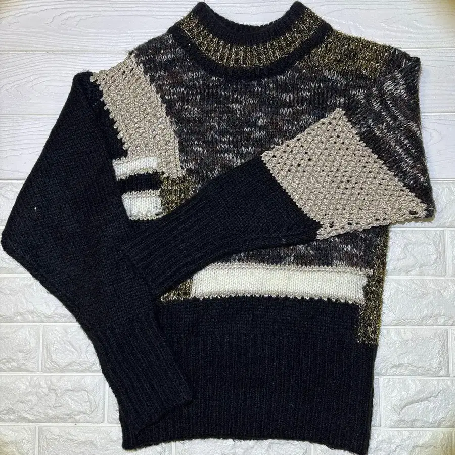 플라스테 2024AW 레이온 블렌드 V넥 라메 스웨터 L 사이즈