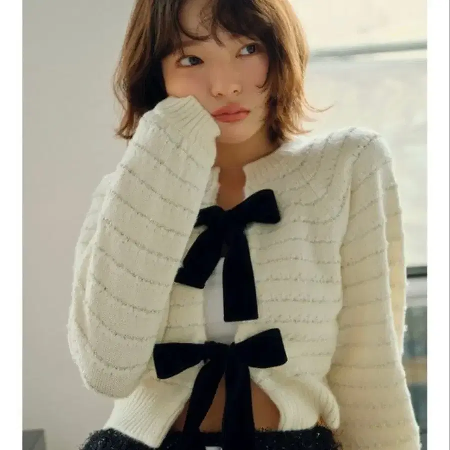 머큐리 듀오 복슬복슬 리본 파츠 니트 가디건