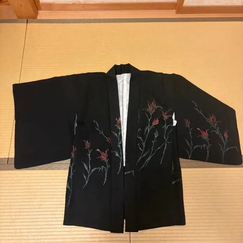 블랙 베이스에 꽃무늬 자수가 들어간 겉옷. - 색상: 블랙 - 디자인: 꽃무늬 자수 - 스타일: 겉옷 방문해 주셔서 감사합니다.