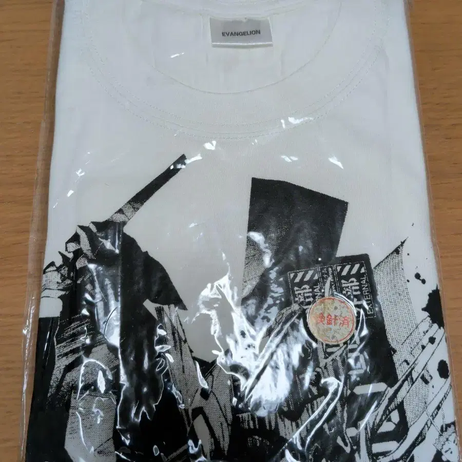화이트 베이스에 블랙 아트 워크가 특징인 신세기 에반게리온 T셔츠.