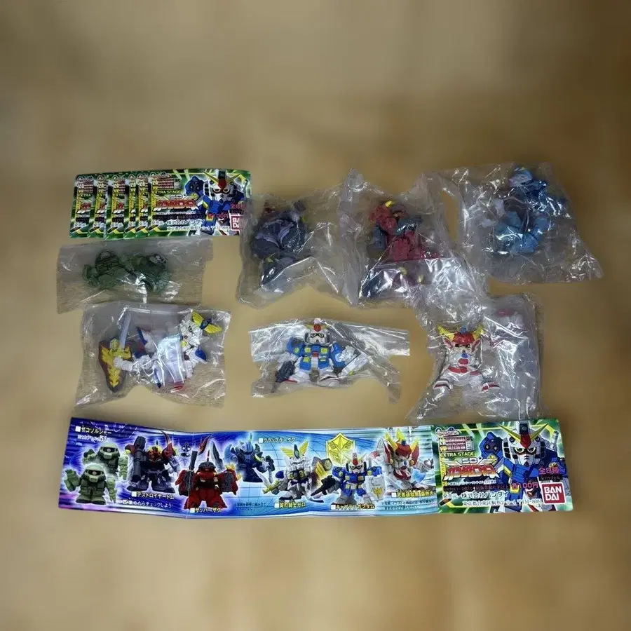 반다이 제조 SD 건담 피규어 8체와 카드 세트. 약간의 가격 인하는 가능하지만, 낱개 판매는 하지 않습니다. 방문해 주셔서 감사합니다.