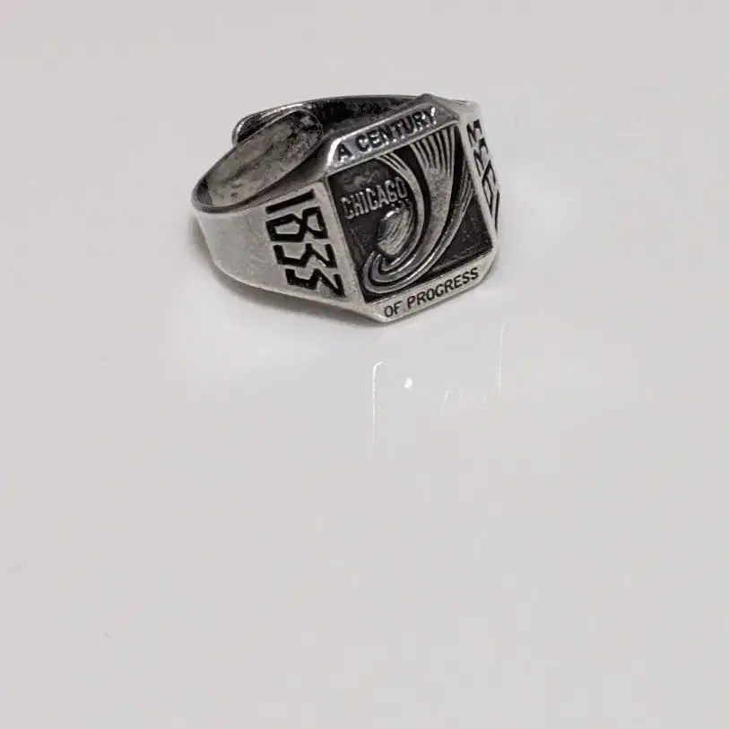 오사카 만국 박람회로부터 약 100년 전. 1933년 시카고 만국 박람회를 기념한 빈티지 실버 반지. - 모델: 실버 반지 - 디자인: 스퀘어형 - 각인: CHICAGO A CENTURY OF PROGRESS 1933 - 소재: 실버 [ 상태 ] 빈티지 제품이므로, 흠집과 얼룩이 있습니다. [ 사이즈 ] 약 16~18호 ( 사이즈 조절 가능 ) 기타 질문이나 이미지 추가 등 댓글 주세요.