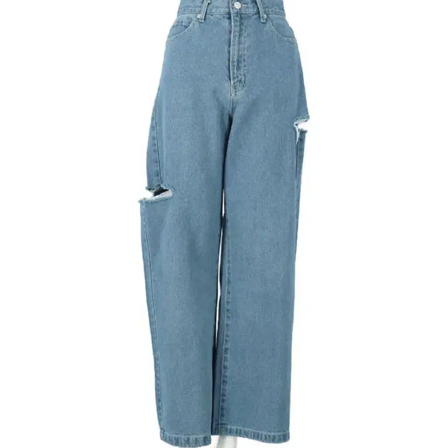 라이트 블루 데미지 데님 팬츠