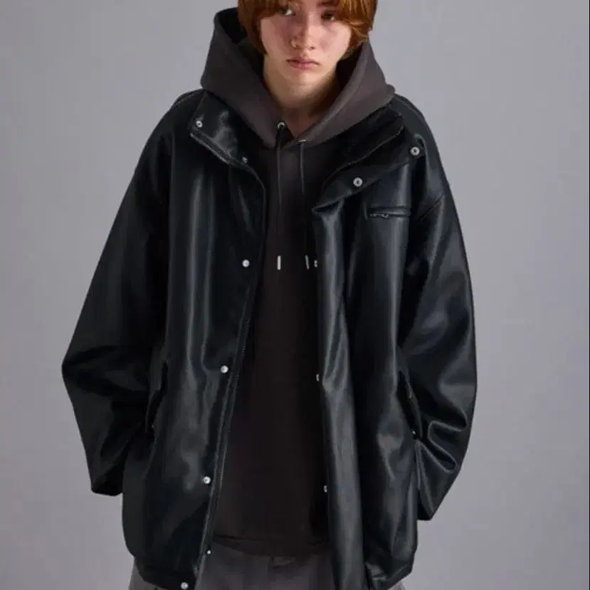 • LAFUDGESTORE 오버핏 가죽 블루종