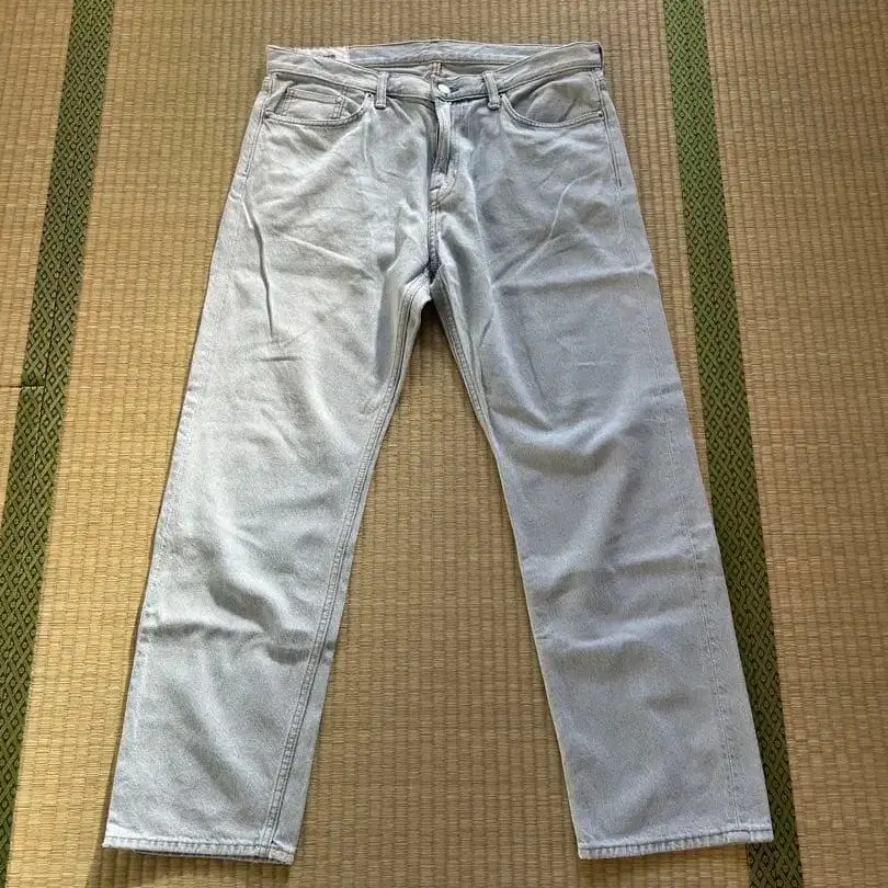 H&M 스트레이트 데님. 탄탄한 원단인데도 부드럽고 움직이기 편합니다. 와이드나 배럴 레그 스타일에 질리셨다면, 이쯤에서 살짝 와이드한 스트레이트 팬츠는 어떠신가요? W36 L30 라이트 블루