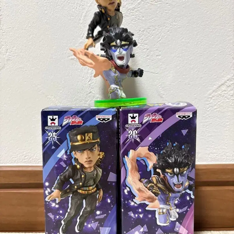 죠죠의 기묘한 모험 제3부 스타더스트 크루세이더즈 쿠죠 죠타로 스타 플래티넘 무다무다 오라 오라 월드 컬렉터블 피규어 ワーコレ 쇼케이스에 장식해 두었습니다. 상자는 접어서 발송합니다. 스타 플래티넘의 받침대 바닥에 접착 흔적으로 보이는 것이 있습니다. 죠타로의 받침대 지지대는 미개봉입니다. 즉시 구매 가능! 다른 판매 상품과 함께 구매하시면 대환영입니다!