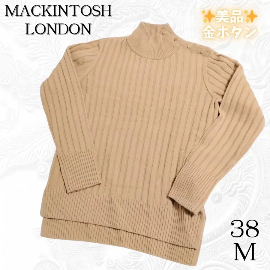 매킨토시 런던 캐시미어 혼방 리브 니트 하이넥 스웨터 골드 버튼 M