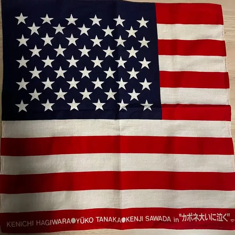 오래되어 일부 올풀림 등이 있지만 눈에 띄는 얼룩은 없습니다. 색바램, 사용감은 있으니 사진으로 확인해주세요. 사이즈는 약 42 x 42cm입니다. 하기와라 켄이치 쇼켄 사와다 켄지 주리 다나카 유코 성조기