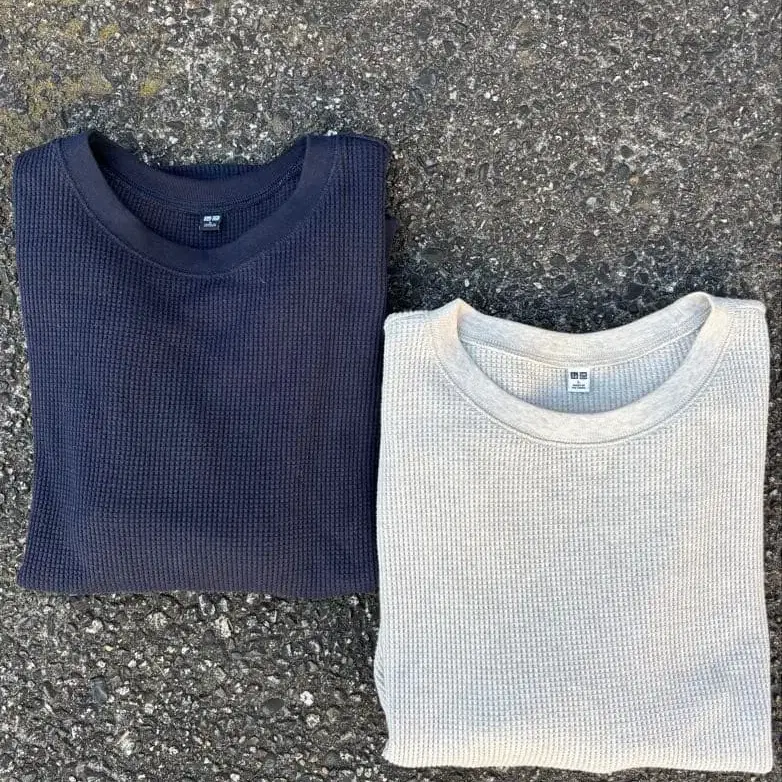 UNIQLO 와플 긴팔 티셔츠 네이비 베이지 티셔츠 2장 세트