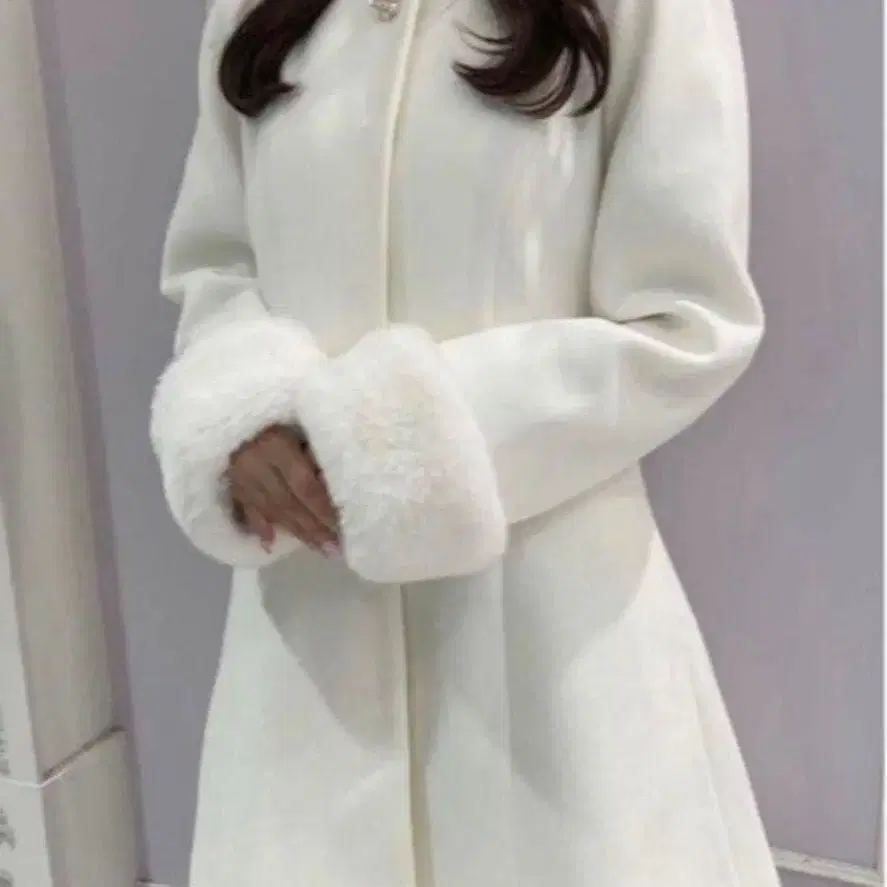 SNIDEL 소매 퍼 플레어 코트 A라인 아이보리