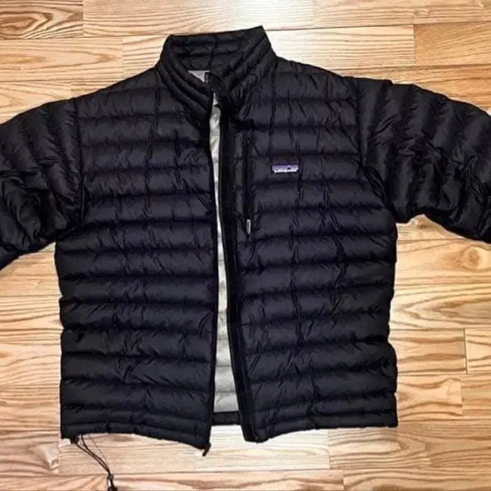 경량성과 보온성이 뛰어난 파타고니아의 다운 자켓, M 사이즈, 블랙 컬러.
