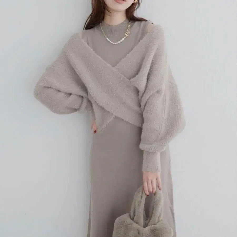 RESEXXY 아이보리 니트탑&슬리브리스 원피스 세트