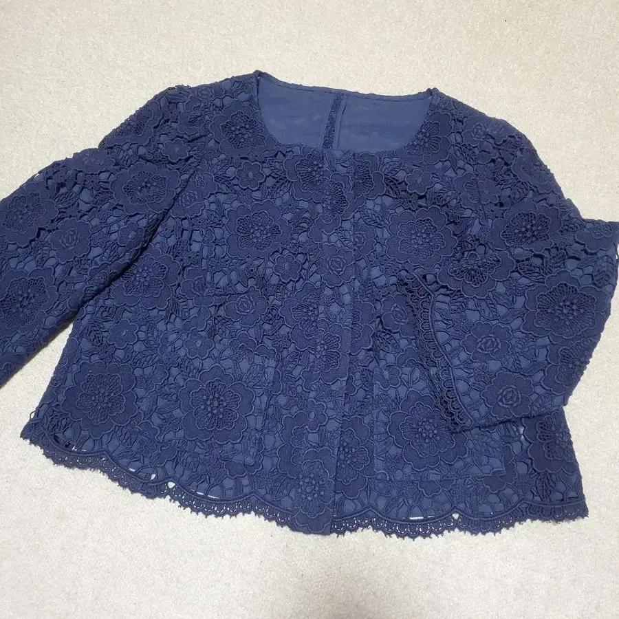 TO BE CHIC 네이비 7부 소매 레이스 디자인 자켓입니다.