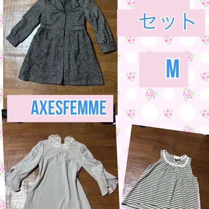 자동 번역되었어요. 원문보기3종 세트 M 사이즈, AXESFEMME 코트, 드레스, 스트라이프 상의.