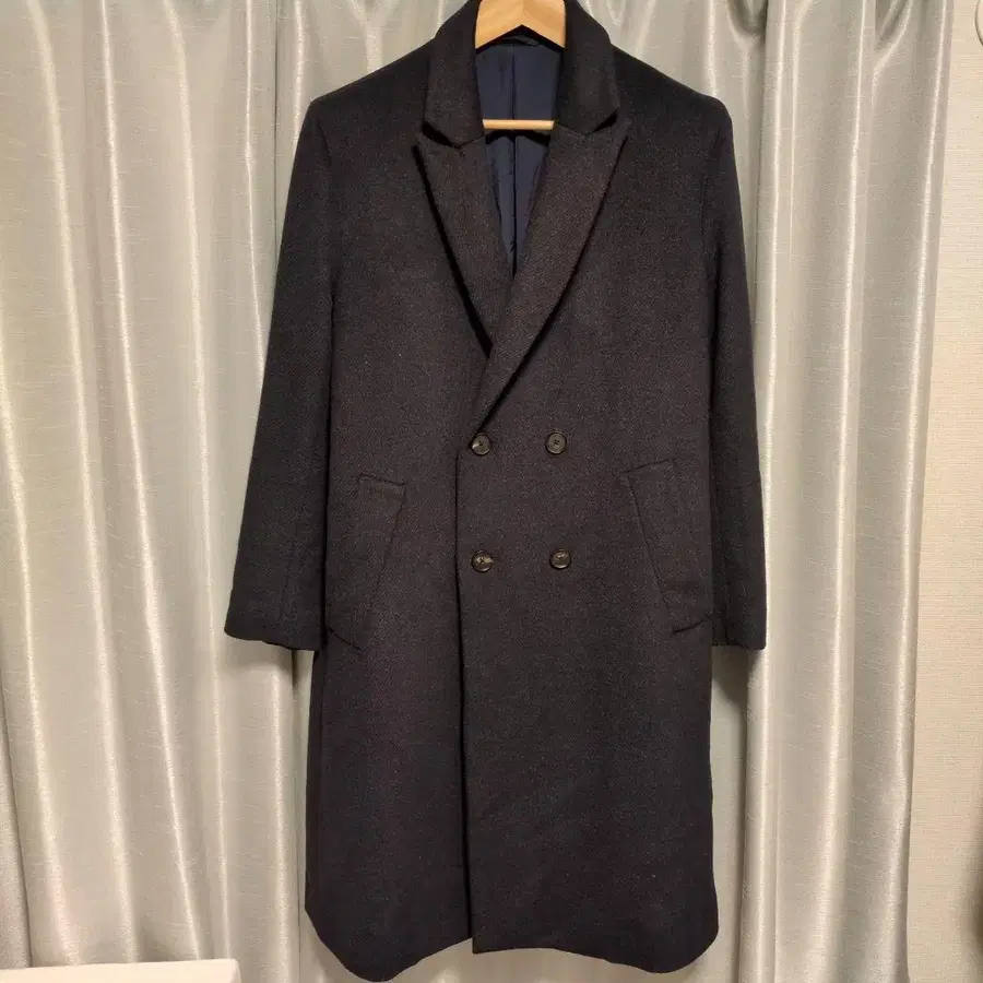 이 네이비 더블 브레스트 체스터 코트는 심플하면서도 세련된 인상을 줍니다. 비즈니스 장면이나 캐주얼한 외출에도 최적입니다.