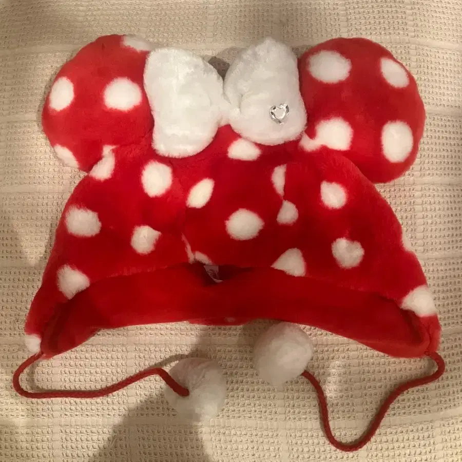 미니 마우스 귀가 특징인 빨간색 플리스 모자. - 색상: 빨간색과 화이트 물방울 패턴 - 디자인: 미니 마우스 귀도리 모자 - 소재: 플리스 소재 - 장식: 화이트 리본과 하트 장식 - 특징: 폼폼 포함된 끈 방문해 주셔서 감사합니다.