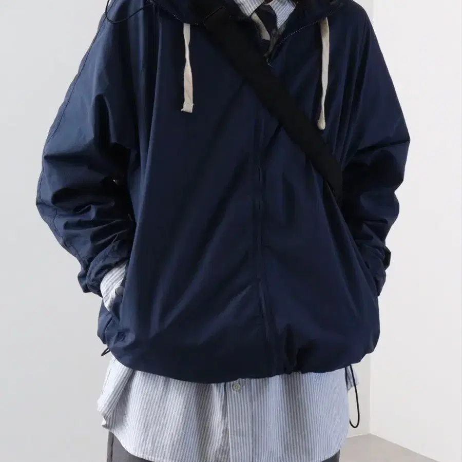 네이비 나일론 자켓 후드 & 드로 코드 포함