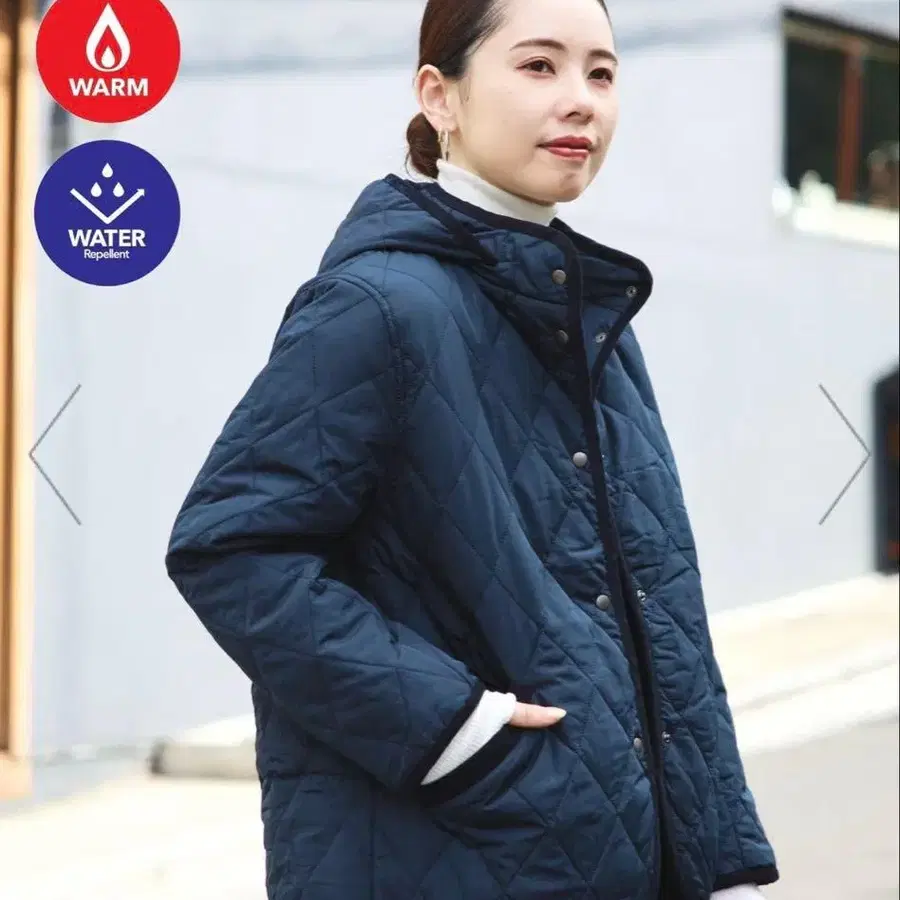 빔즈 네이비 퀼팅 자켓 후드 부착