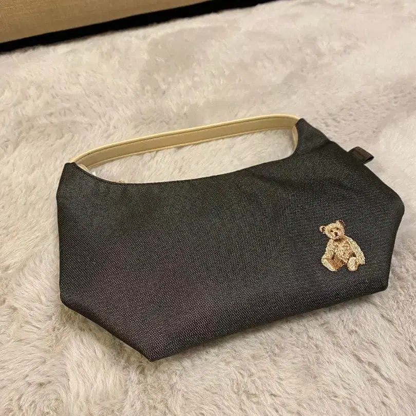곰 자수가 특징인 블랙 핸드백. - 색상: 블랙 - 디자인: 곰 자수 포함 - 안쪽 색상: 파랑 - 모양: 평평한 바닥 가로 길이: 약 15cm 높이: 약 15cm 바닥: 약 7cm 방문해 주셔서 감사합니다.