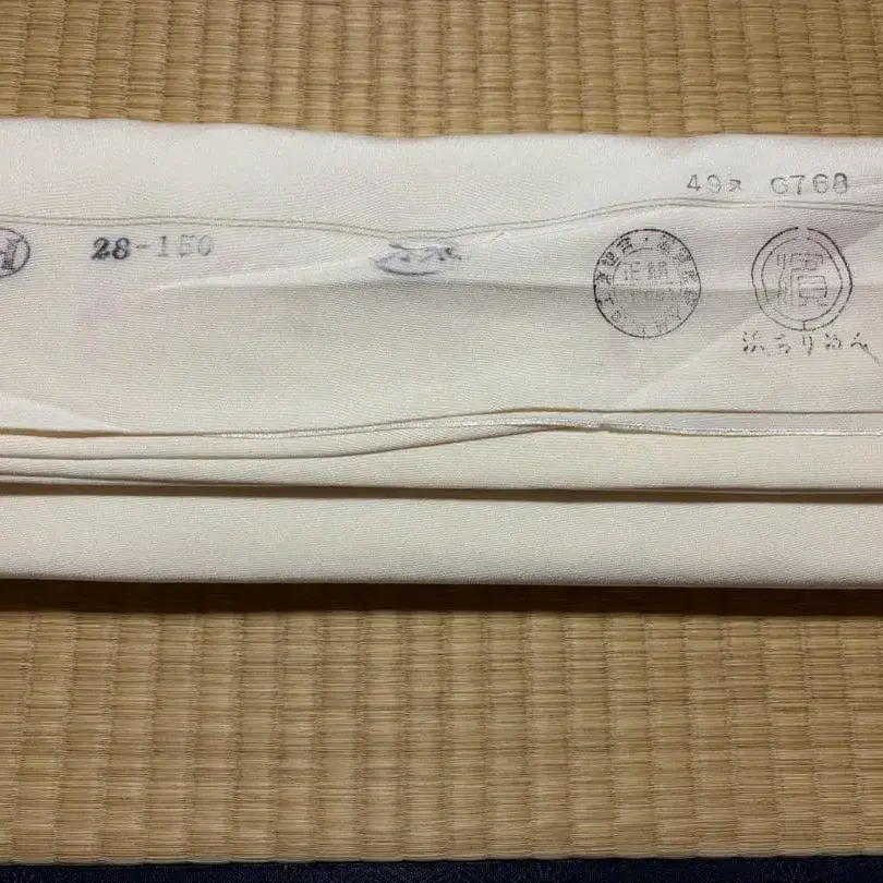 순수 실크 크레이프 원단의 화이트 옷감입니다. 장기 보관품이지만, 눈에 띄는 얼룩이나 황변은 보이지 않습니다. 중량 약 720g으로, 원단 양은 충분합니다. 기모노용, 염색용, 리메이크 소재로도 이용하실 수 있습니다.