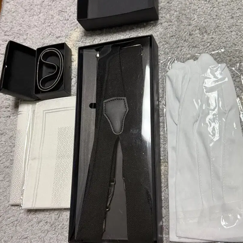 화이트 장갑과 블랙 서스펜더 세트.