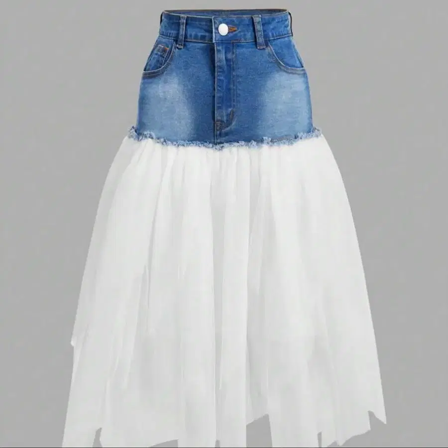 데님과 튤의 콤비로 캐주얼하면서도 페미닌한 롱 스커트. - 디자인: 데님과 튤의 콤비네이션 - 컬러: 데님 블루와 화이트 - 버튼: 프론트 버튼 포함 - 스타일: 캐주얼하고 페미닌한 인상 - 실루엣: A라인 실루엣 방문해 주셔서 감사합니다. ⚠️ 가격 인하 요청 ⭕️