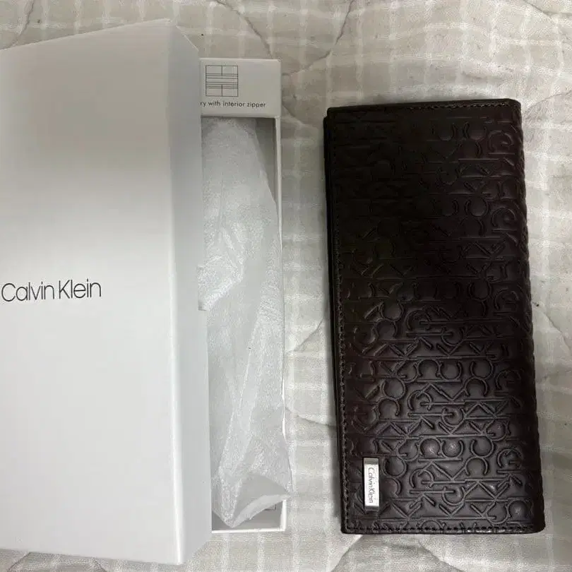Calvin Klein의 장지갑입니다. 브라운 색상의 엠보 가죽으로 고급스러움이 있습니다. 상자에 담긴 상태의 미사용품입니다.