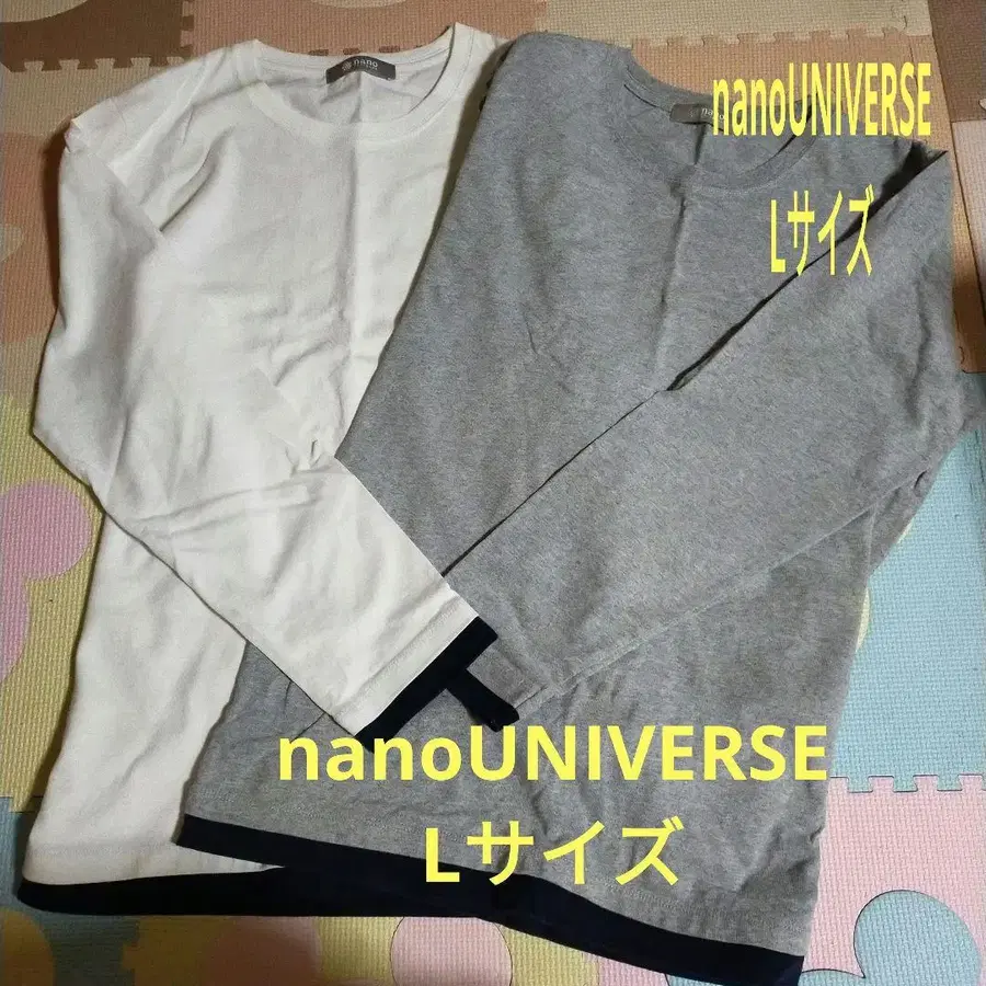 나노 유니버스의 L 사이즈, 화이트와 그레이 색상의 긴팔 티셔츠입니다.