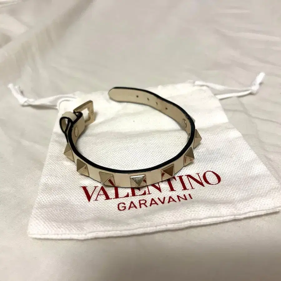 발렌티노 스터드 장식 화이트 가죽 팔찌