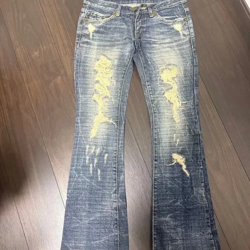 플레어 데님 y2k 데미지 가공 프린지 데님 부츠컷
