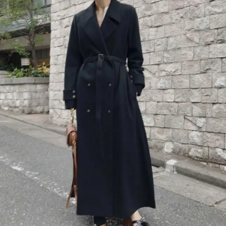 ef-de 블랙 리본 벨트 롱 코트