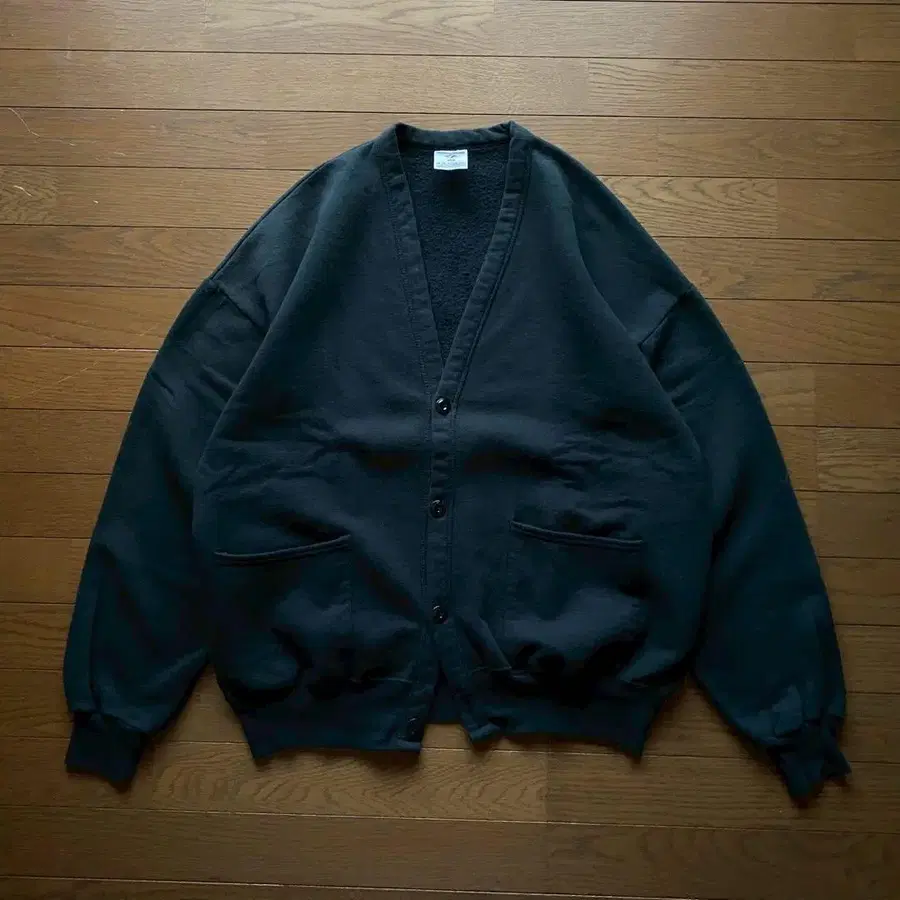 90s~ 저지 맨투맨 가디건 블랙 색상으로 상태도 좋고, 아직 푹신합니다. 평평하게 놓았을 때 실측 어깨 너비 69cm 가슴 너비 65cm 기장 68cm 소매 길이 60cm