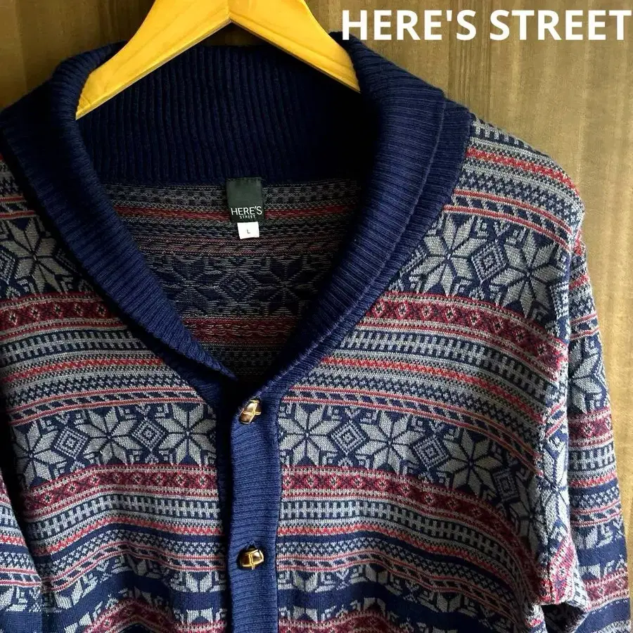 [ 새상품급 ] HERE'S STREET 호두 버튼 스노우 패턴 가디건