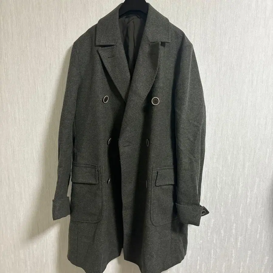 울 다크 브라운 더블 브레스트 피코트 manydope