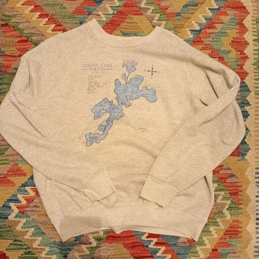 자동 번역되었어요. 원문보기스파이더 호수 지도가 프린트된 라이트 그레이 맨투맨입니다. 목 부분의 택이 없어, 택으로 바디 메이커나 연대 판별이 어렵지만, 분위기 등으로 보아 00년대가 아닌 80년대~90년대 제품으로 판단됩니다. 빈티지 맨투맨에 필적하는 좋은 분위기의 제품이니 꼭 만나보세요.