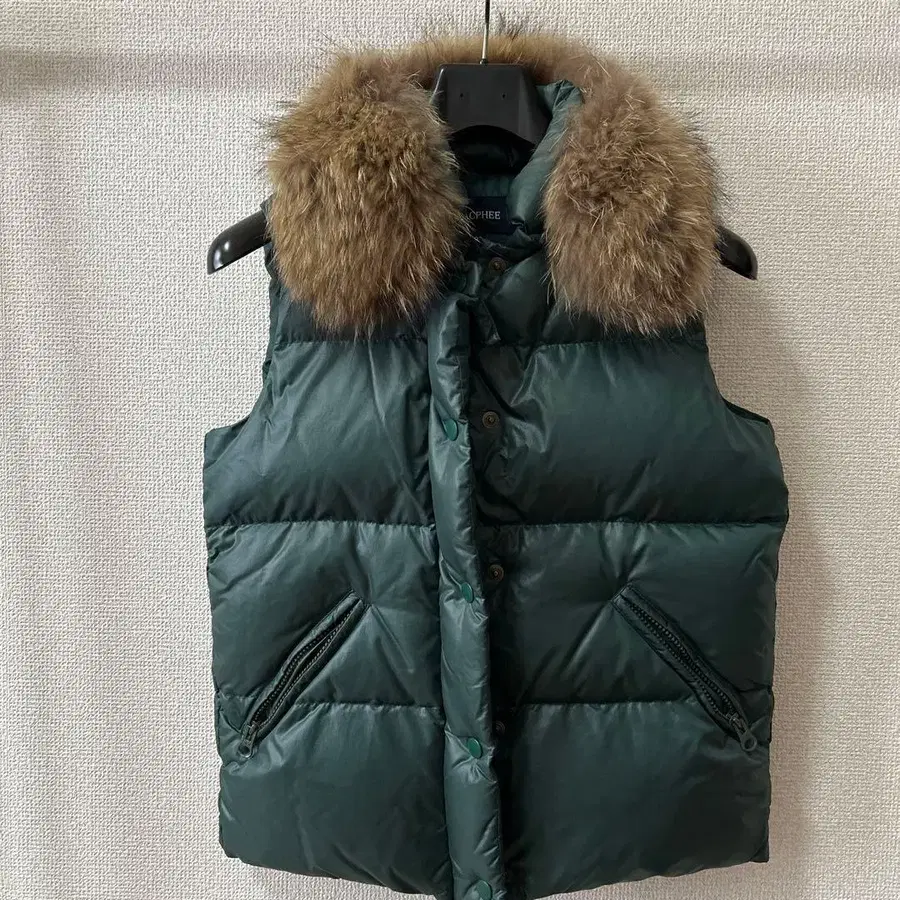 투모로우랜드 특유의 고급스러운 디자인 차분한 그린 색상의 다운 베스트입니다. 엘레강트하게도 캐주얼하게도 활용 가능하며, 매우 멋스럽다고 생각합니다. 목 부분에 탈부착 가능한 퍼가 달려 있습니다. 가슴 너비 - 약 48cm 정도 겨드랑이 아래 부분 기장 - 약 55cm 정도 목 아래부터 다운 90% 페더 10% 퍼 라쿤 많이 사용하지 않고 자택 보관했습니다. 약간의 사용감은 있지만, 특별히 크고 눈에 띄는 데미지는 보이지 않는다고 생각합니다. 일반적인 used 제품이므로 이해 부탁드립니다.