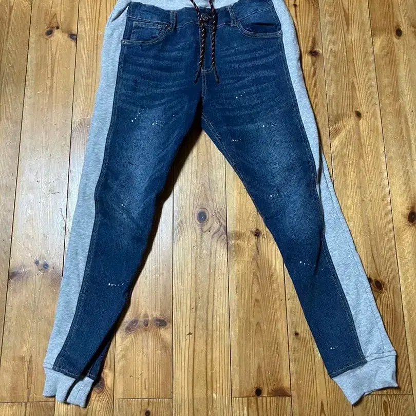 다크 블루 색상의 데님과 그레이 색상의 맨투맨 소재를 콤비하여 캐주얼한 스타일에 최적입니다. - 색상: 다크 블루와 그레이 - 스타일: 스웨트 팬츠와 데님 콤비 - 디자인: 데미지 가공 있음 - 허리: 드로우 스트링 포함 방문해 주셔서 감사합니다.