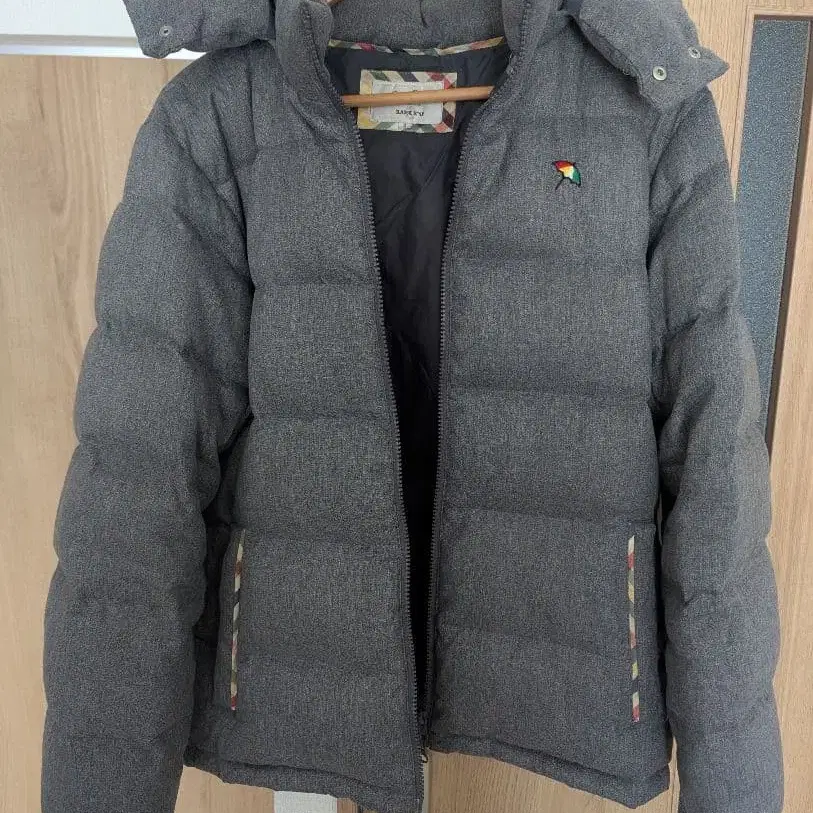 그레이 후드 부착 따뜻한 패딩 자켓 M
