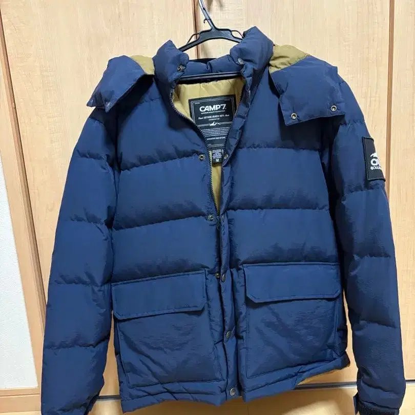 CAMP7 후드 부착 다운 자켓 M 사이즈 네이비