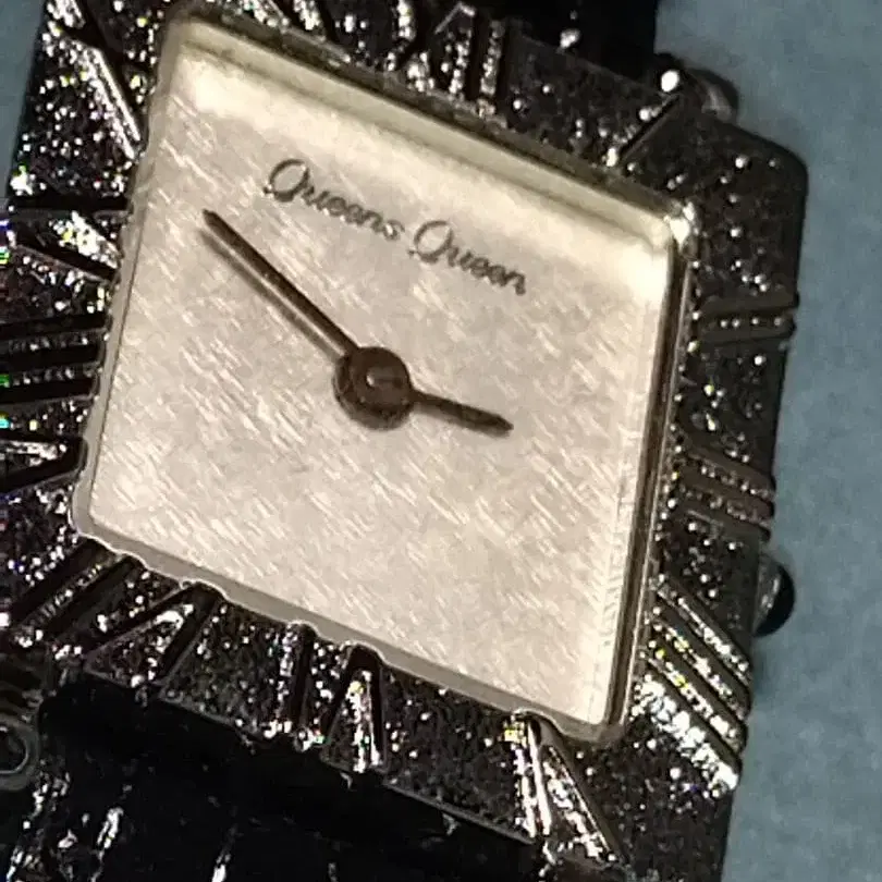 Queens Queen 퀸즈 퀸 실버 은박 손목시계 미사용 케이스 포함 새상품급 여성용 워치 여왕 중의 여왕이라는 이름의 아름다운 시계입니다. 배터리를 빼서 보관했기 때문에 액체 누출 등은 없습니다. 판매를 위해 작동 확인은 하지 않았습니다. 미사용 새상품이라고 해도 어느 정도의 노후화가 있을 수 있으므로, 인테리어, 자료로서 판매합니다. 크라운은 오닉스, 다이얼은 은박 가공으로 보입니다. 케이스 포함