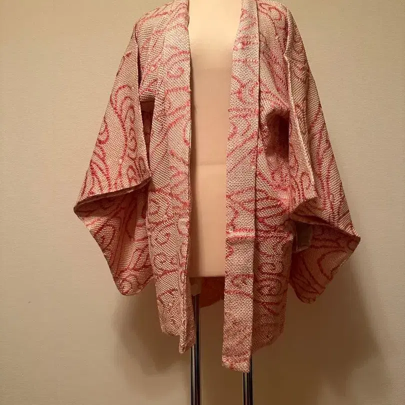 이중 기모노 그린 컬러 버드나무 색 모란 패턴 자체 무늬 있음 NO.47