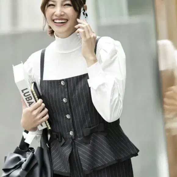 슈퍼 뷰티 리본 디자인 니트 x 타프타 절개 튜닉
